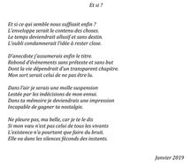Parfois écrites sur un siège du métro ou dans un parc lors d'errances en solitaire parisien, parfois encore liées à la contingence ou simplement de génération spontanée parce que ma vie était arrivée à un moment précis pour l'une d'elle.